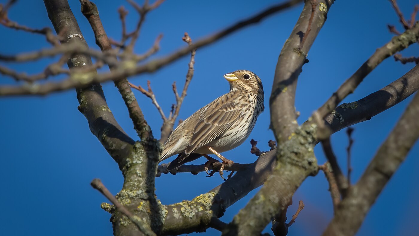 Corn Bunting | Emberiza calandra | Photo made near Someren, The Netherlands | 21-02-2021